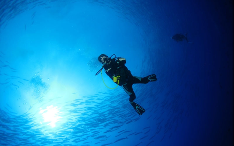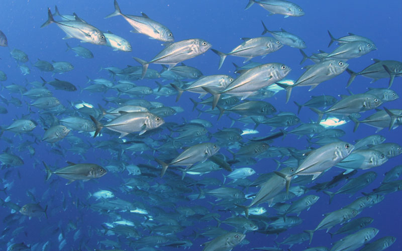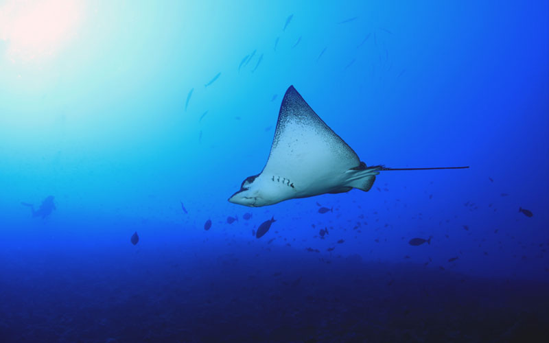Atunes, rayas y, a veces tiburones martillo o pez espada vienen de las profundidades para verte.
