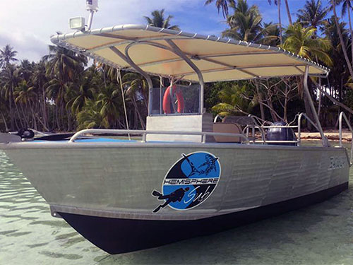 Aluminum diving boat, create for small groups and private dives, it is a boat for 6 divers maximum with a real comfort on board.